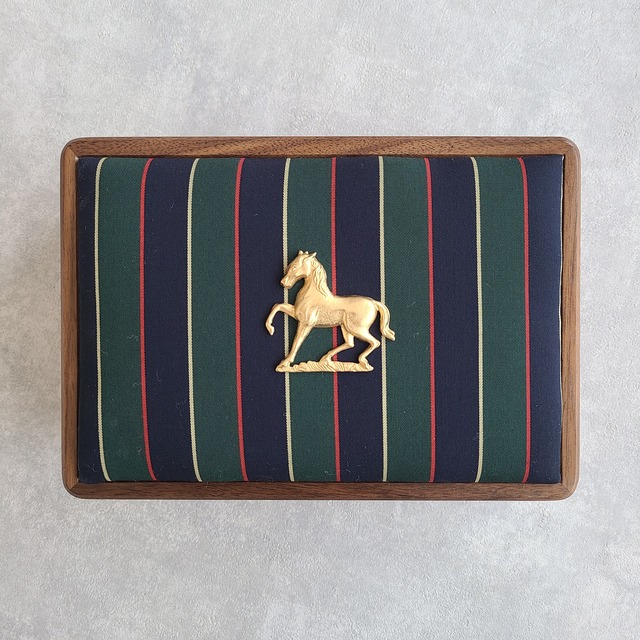 <ご予約受付中>【馬モチーフ真鍮チャーム付き】木製ジュエリーボックス|レジメンタルストライプ|男女兼用・ギフトにも