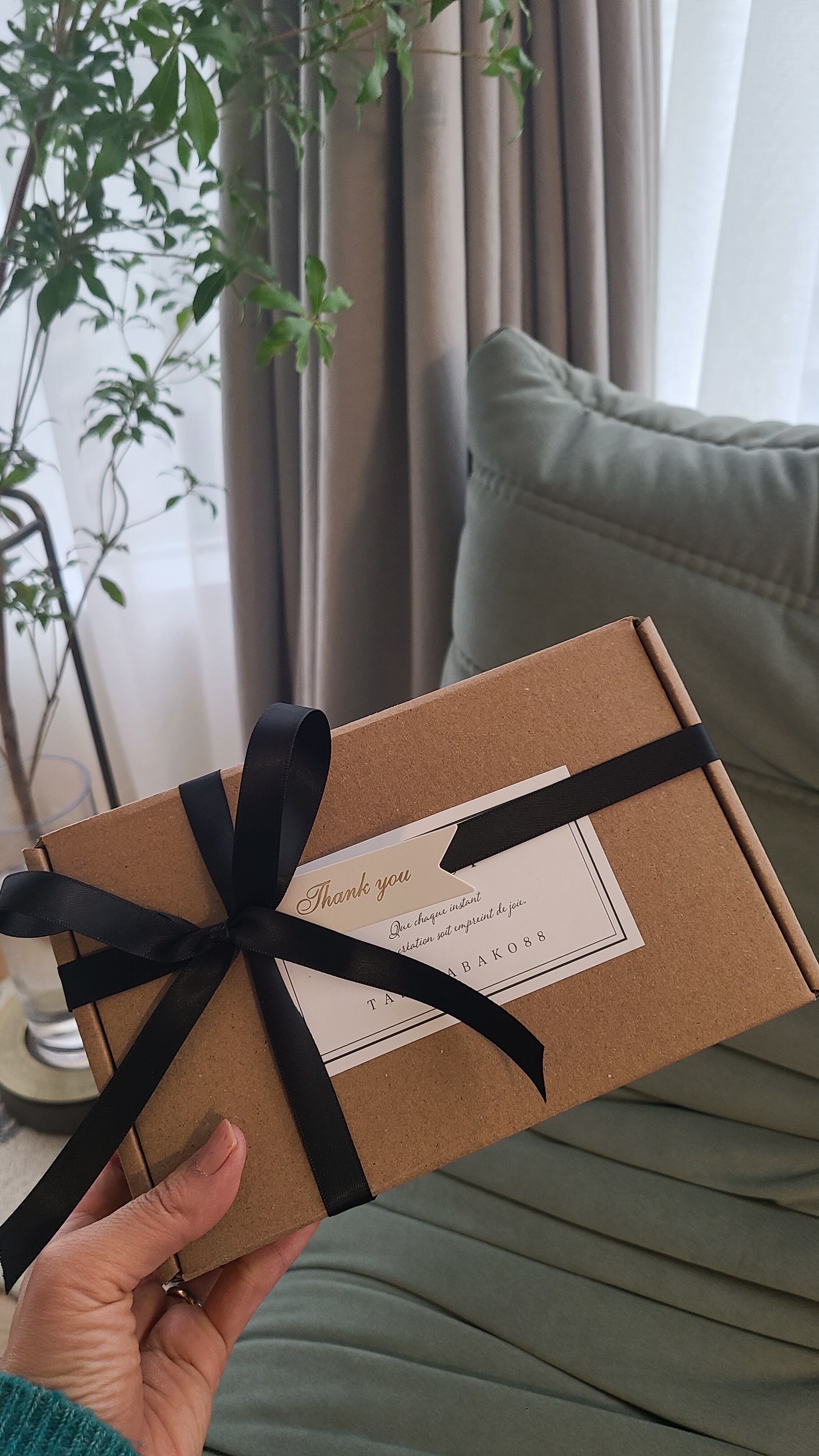 黒いリボンのついた袋に入れてお送り致します。