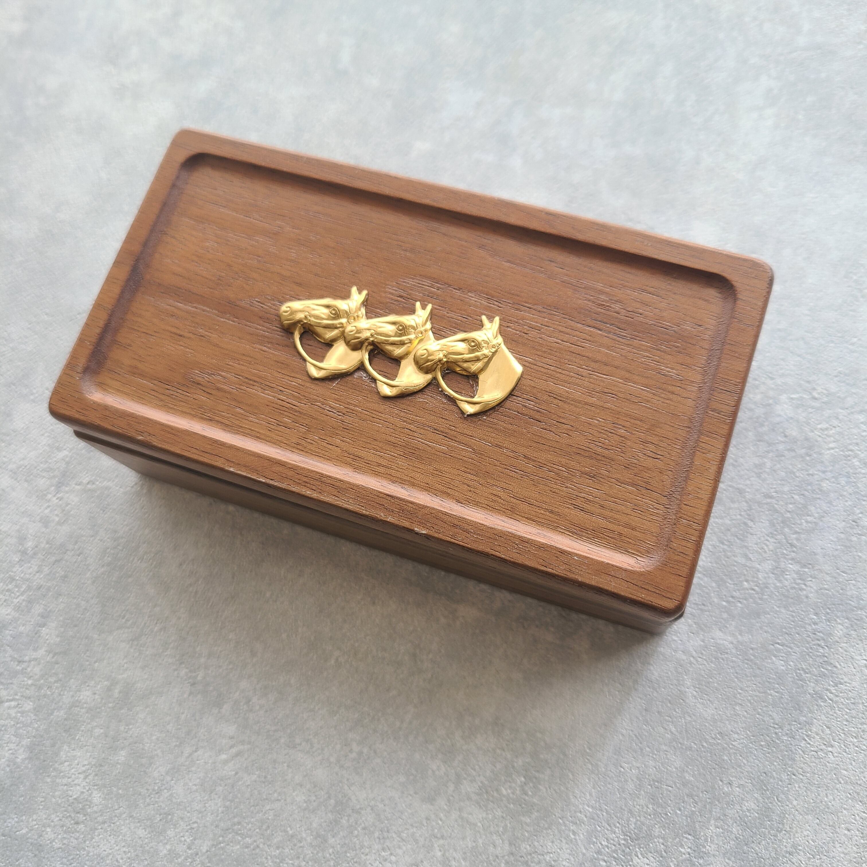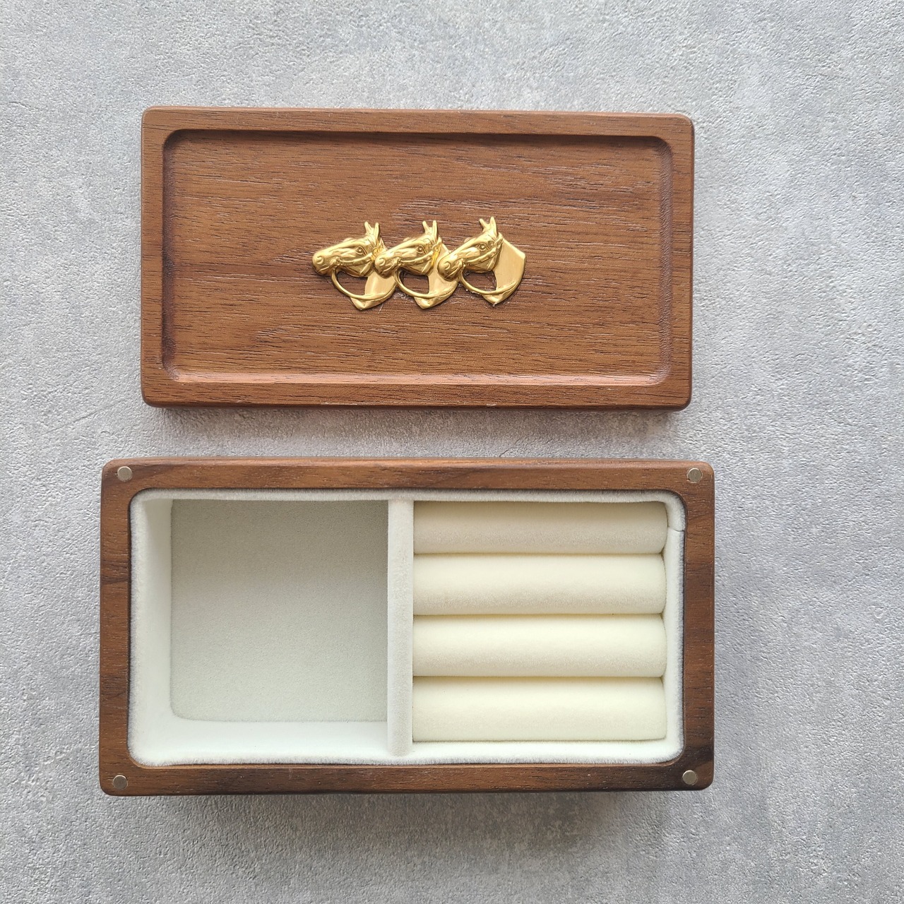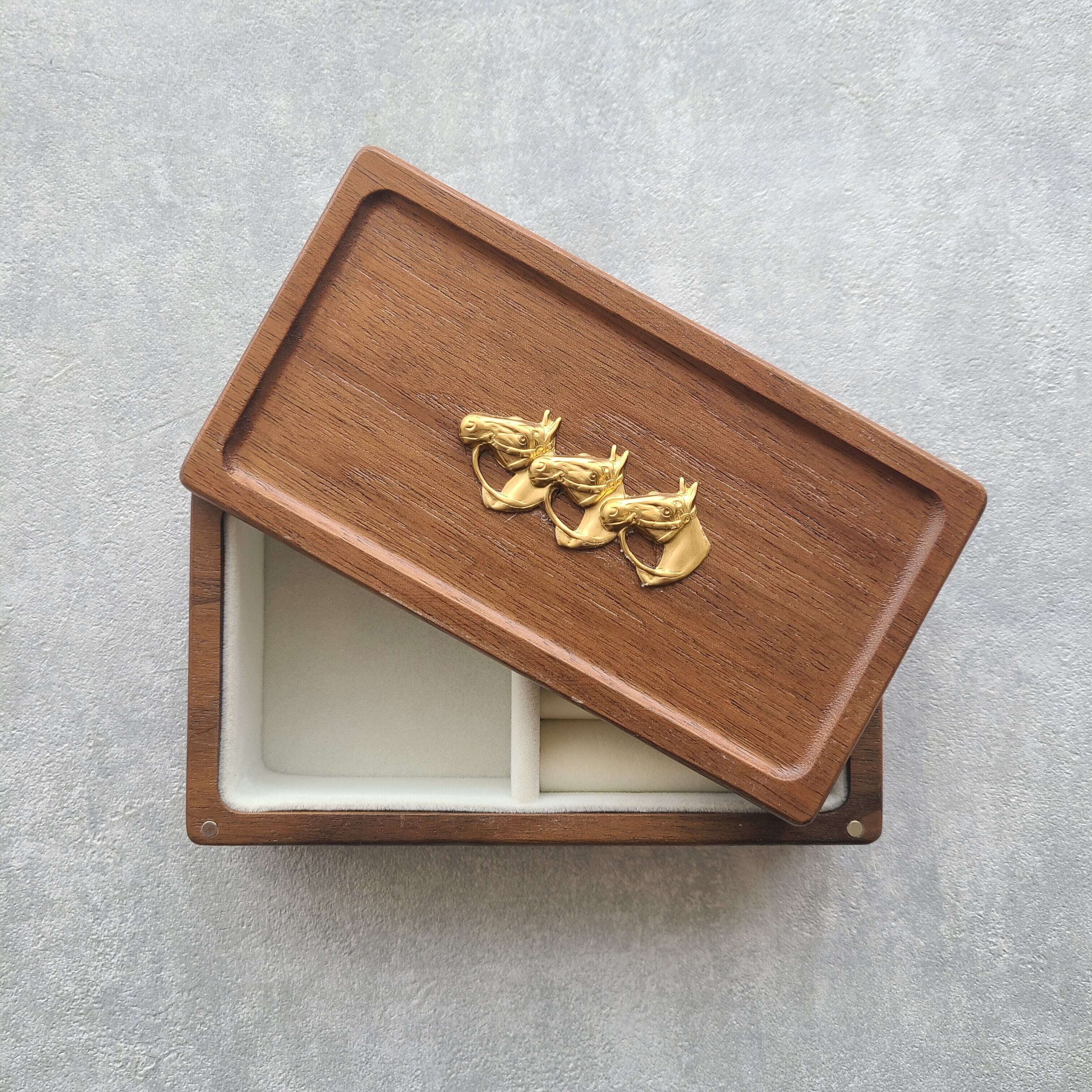 【ギフト対応・手のひらサイズ】馬モチーフの小さなジュエリーボックス|旅行や習い事にマグネット式アクセサリーケース(濃茶) | 【takarabako88】1点物のジュエリーボックス/メモリアルボックス~誕生日プレゼント・記念日・特別なギフトに~