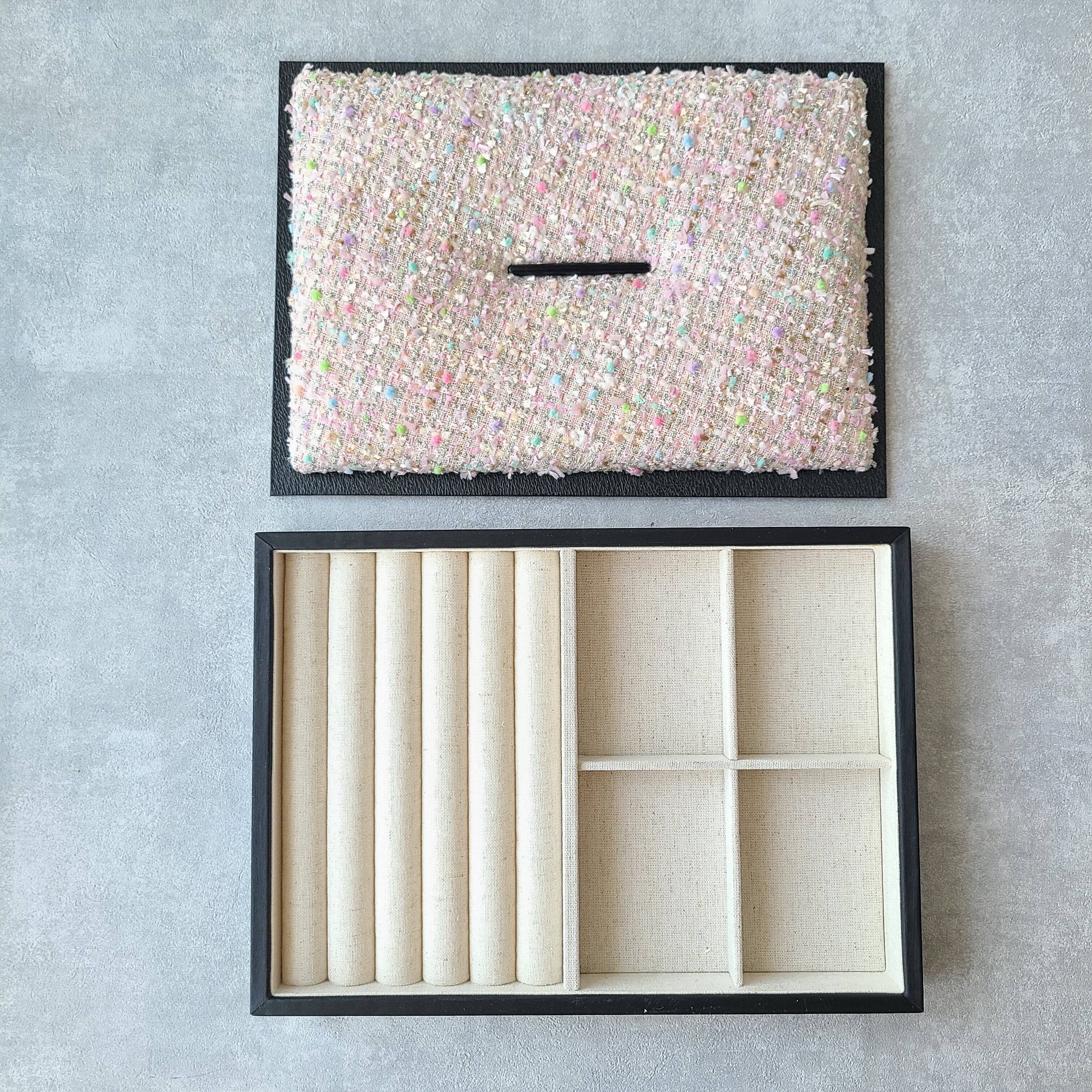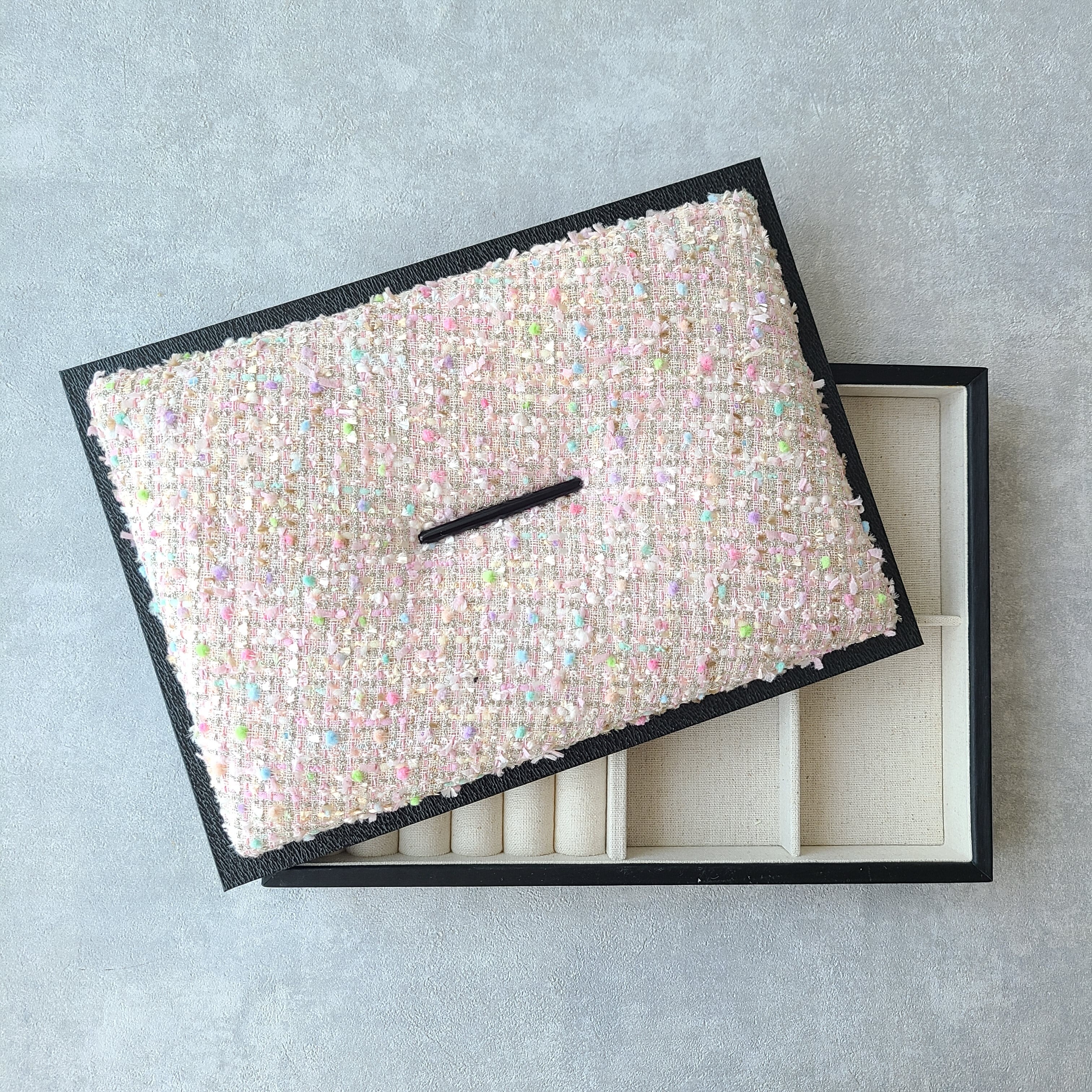 【国産ツイード使用】ラグジュアリーな尾州ツイードを贅沢に使用した、大人のためのジュエリーボックス シャンパンピンク | 【takarabako88】1点物のジュエリーボックス/メモリアルボックス~誕生日プレゼント・記念日・特別なギフトに~