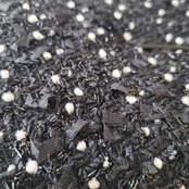 小さな水玉模様のリボンと、白いネップ糸が織り込まれています。