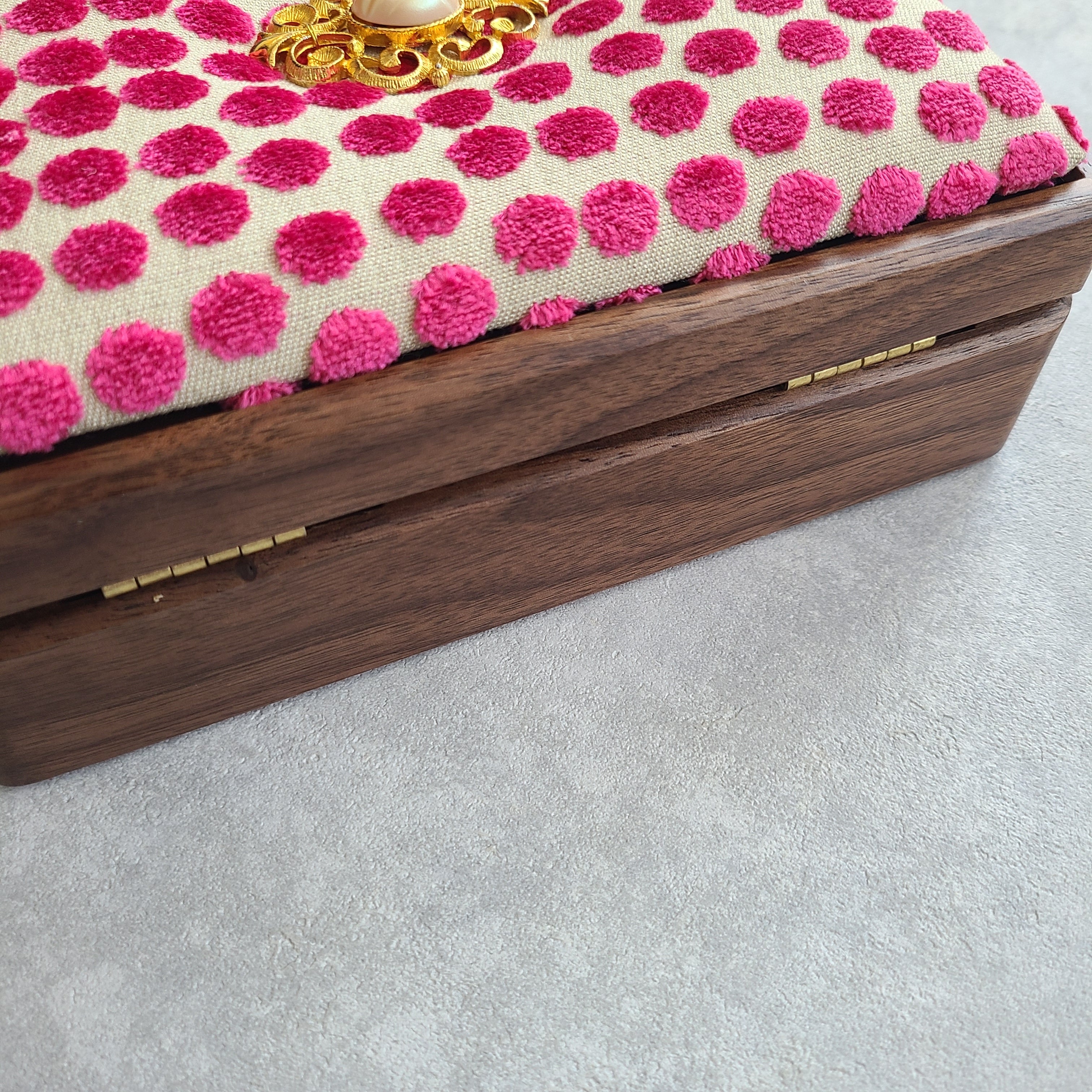 おしゃれな木製ジュエリーボックス|ヴィンテージチャーム×ピンク水玉インポート生地 一点物の宝箱/収納ケース ギフト梱包無料! | 【takarabako88】1点物のジュエリーボックス/メモリアルボックス~誕生日プレゼント・記念日・特別なギフトに~