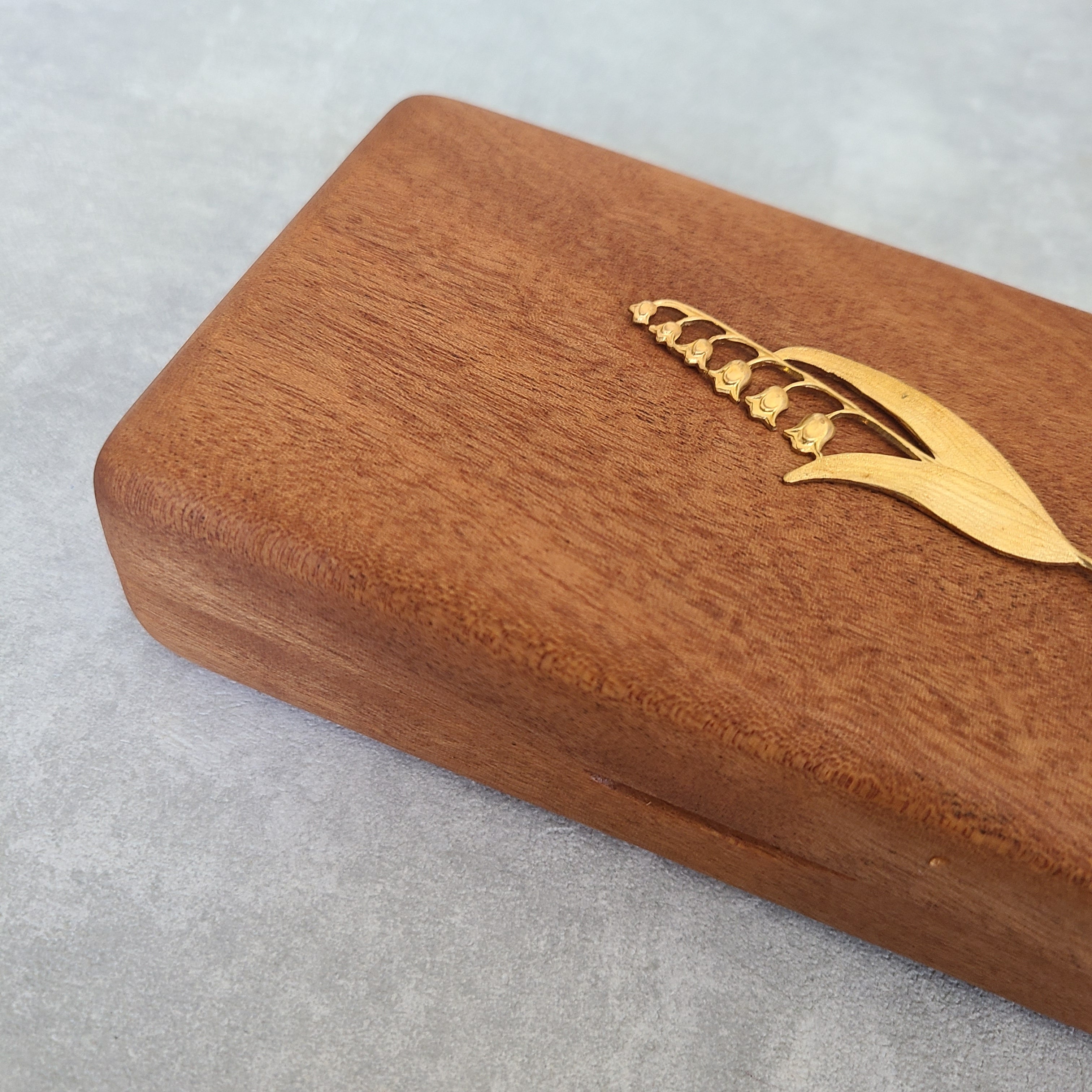 スズラン 真鍮モチーフの木製ジュエリーボックス|おしゃれなギフト 宝石箱 母の日・誕生日プレゼントにおすすめ | 【takarabako88】1点物のジュエリーボックス/メモリアルボックス~誕生日プレゼント・記念日・特別なギフトに~
