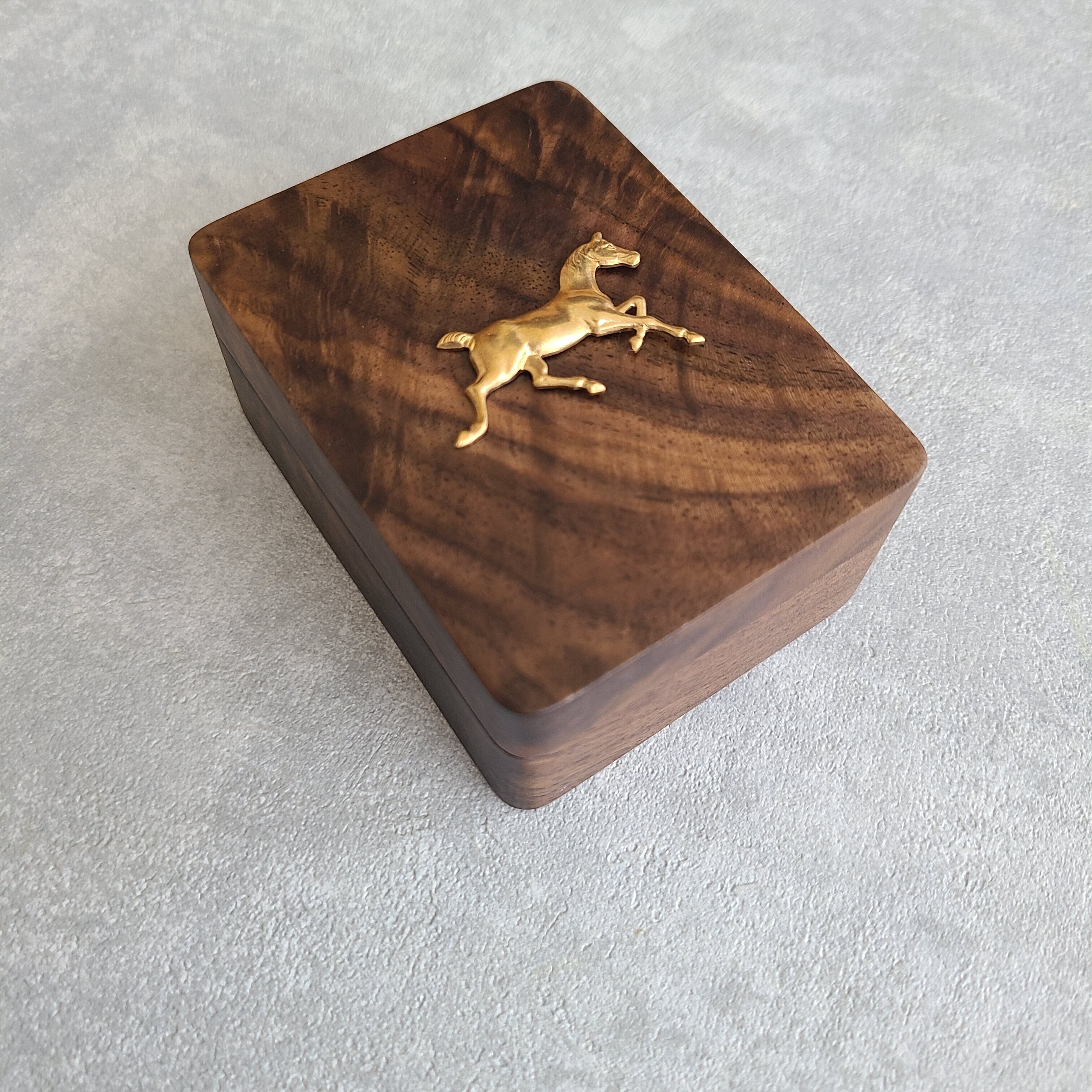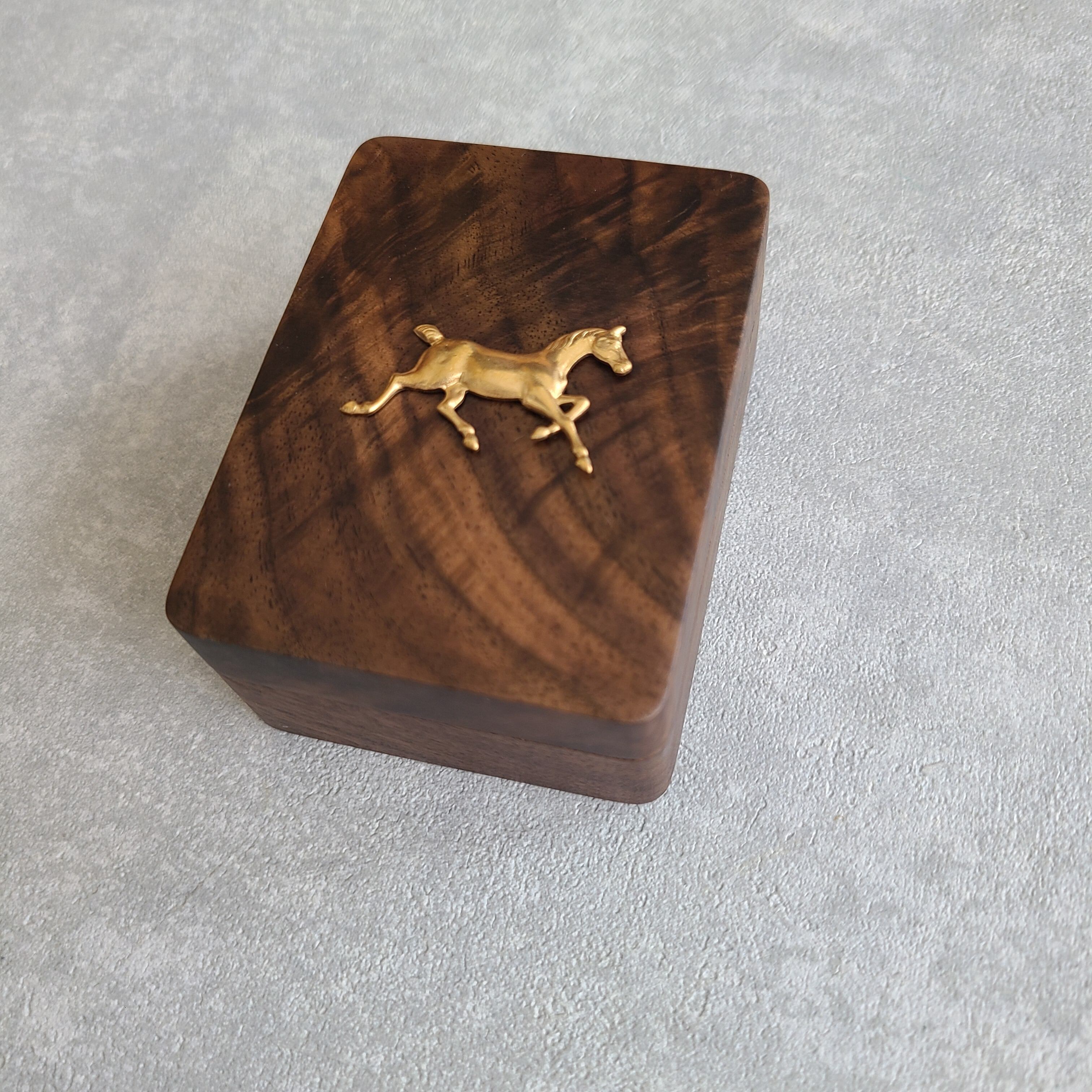 【ギフト梱包無料】馬モチーフ付きミニケース|大人可愛い木製アクセサリーボックス・旅行や習い事にも ピルケース