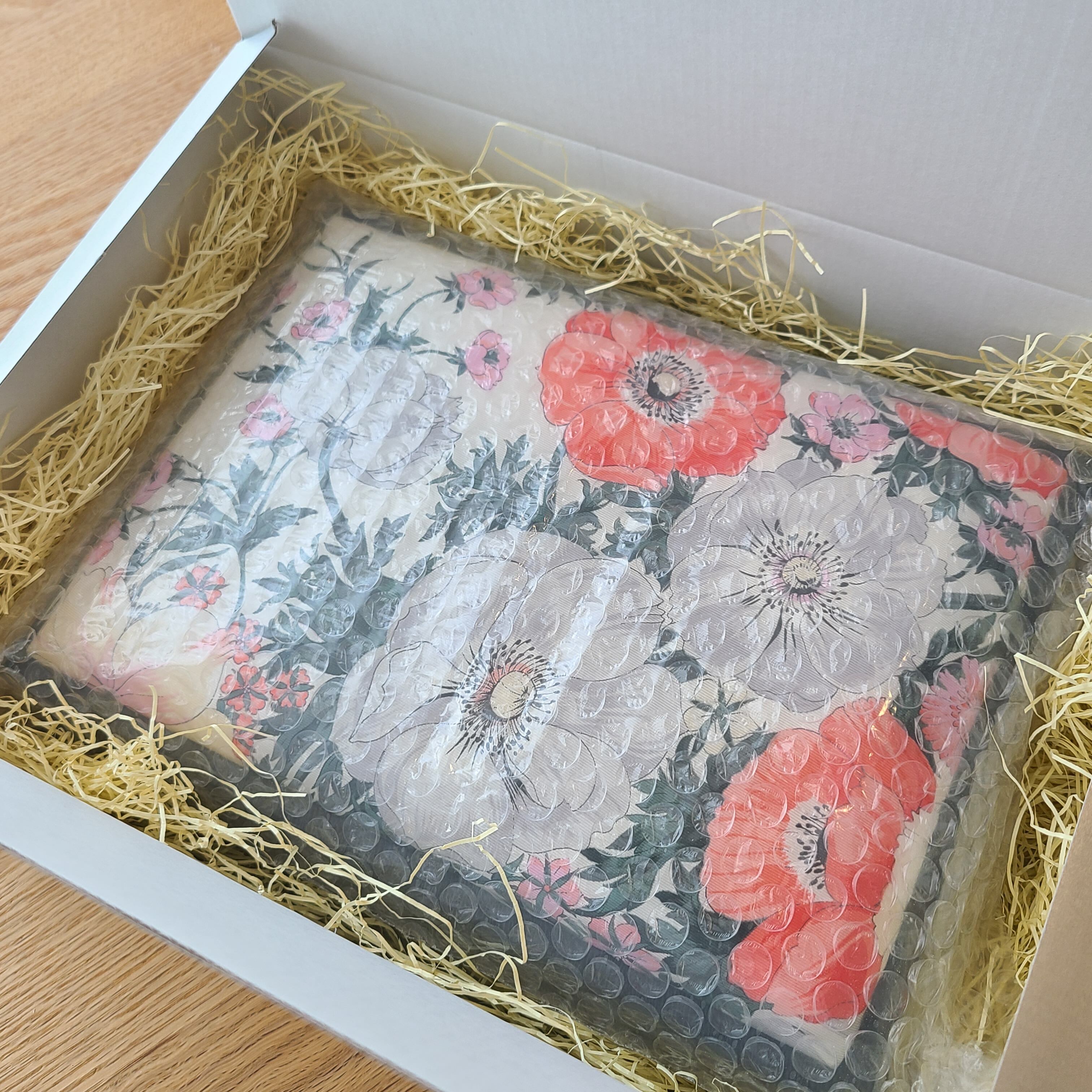 ボックスの大きさに合わせて「一番美しく見える部分」を選んで使用します。柄の配置は基本的にお任せいただけますと、仕上がりがより自然になりますが、ご希望の方には、ご相談しながら仕上げさせていただくことも可能です!