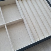 仕切り部分:天然素材の麻を使用。粗野さのないやわらかな質感で、大切なアクセサリーをやさしく守ります。