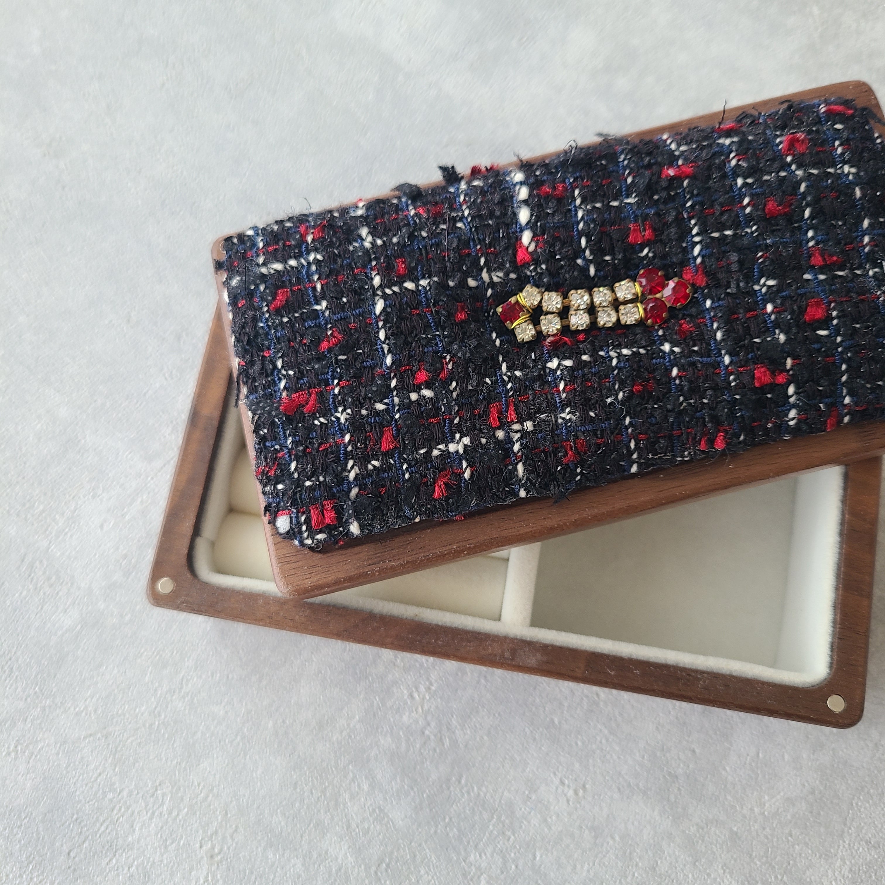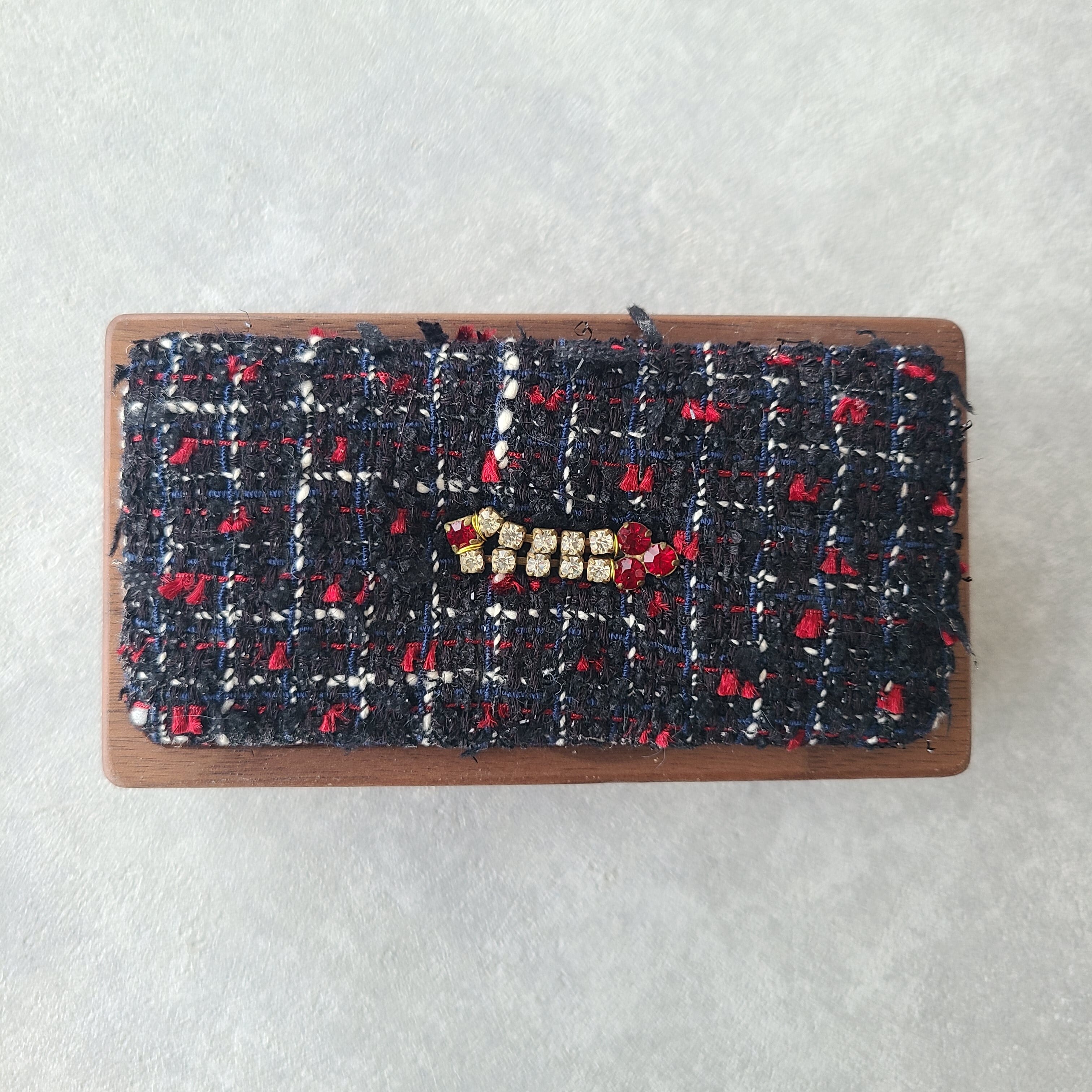 【1点ものジュエリーボックス】USAヴィンテージイヤリング とインポートツイード の木製小物入れ/アクセサリーケース | 【takarabako88】1点物のジュエリーボックス/メモリアルボックス~誕生日プレゼント・記念日・特別なギフトに~