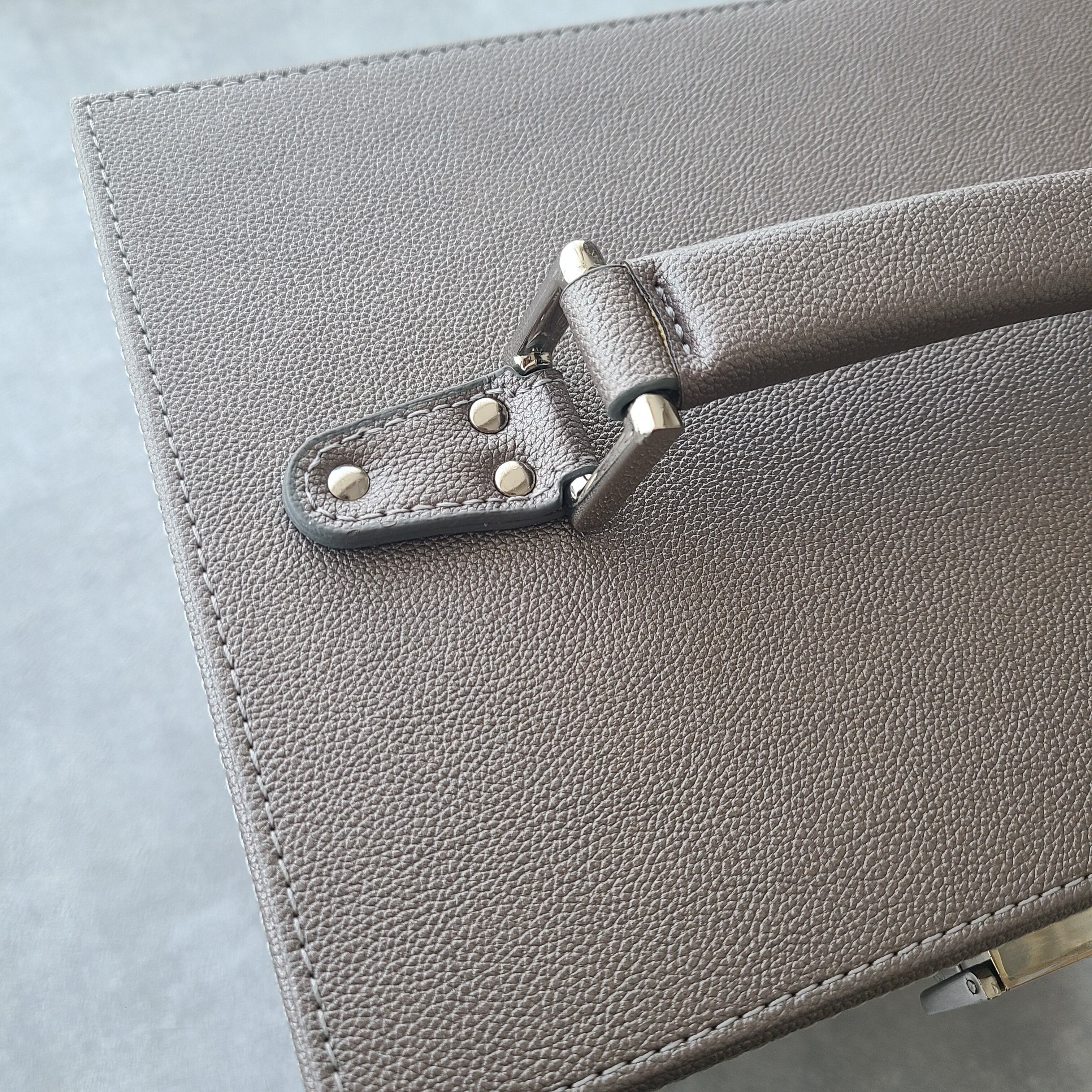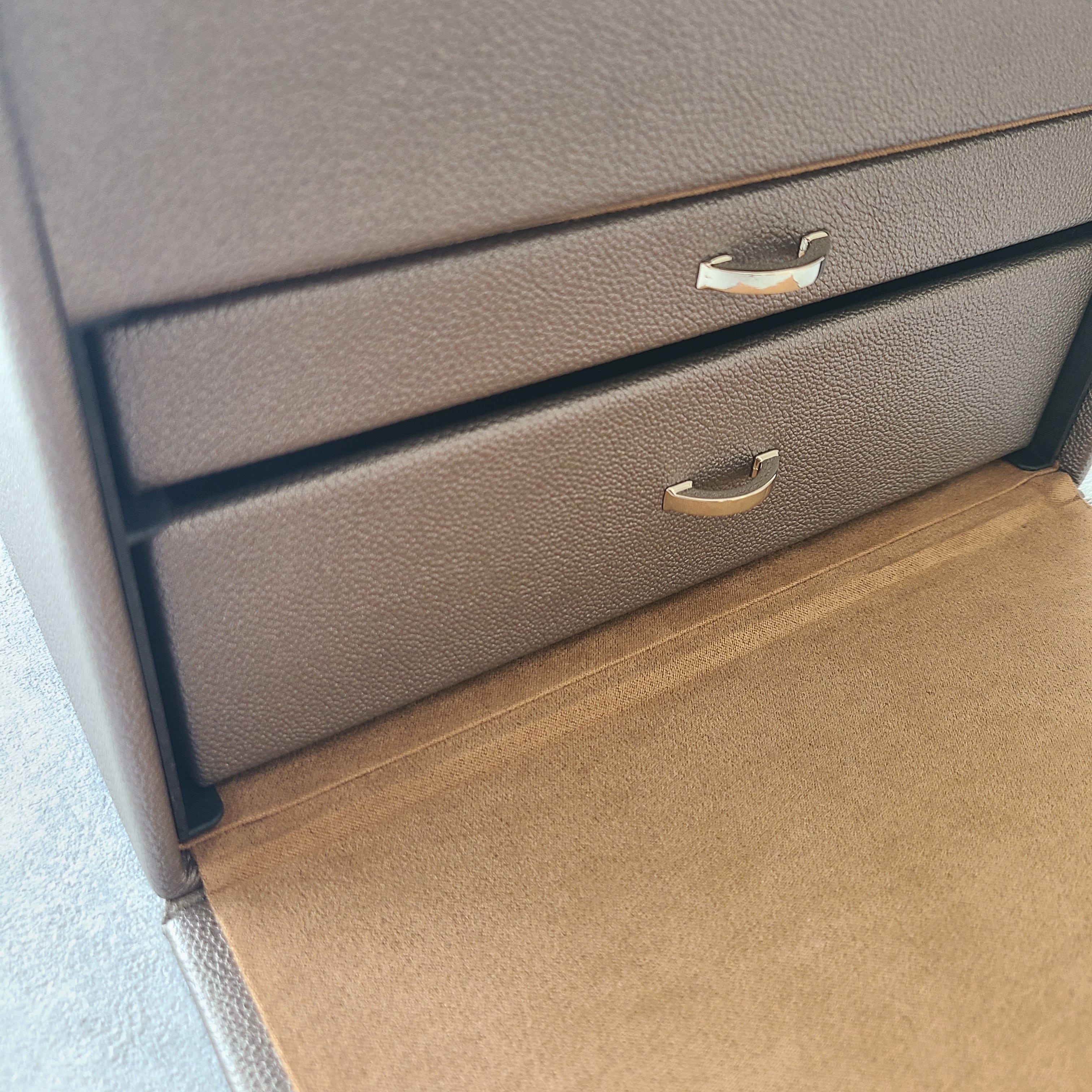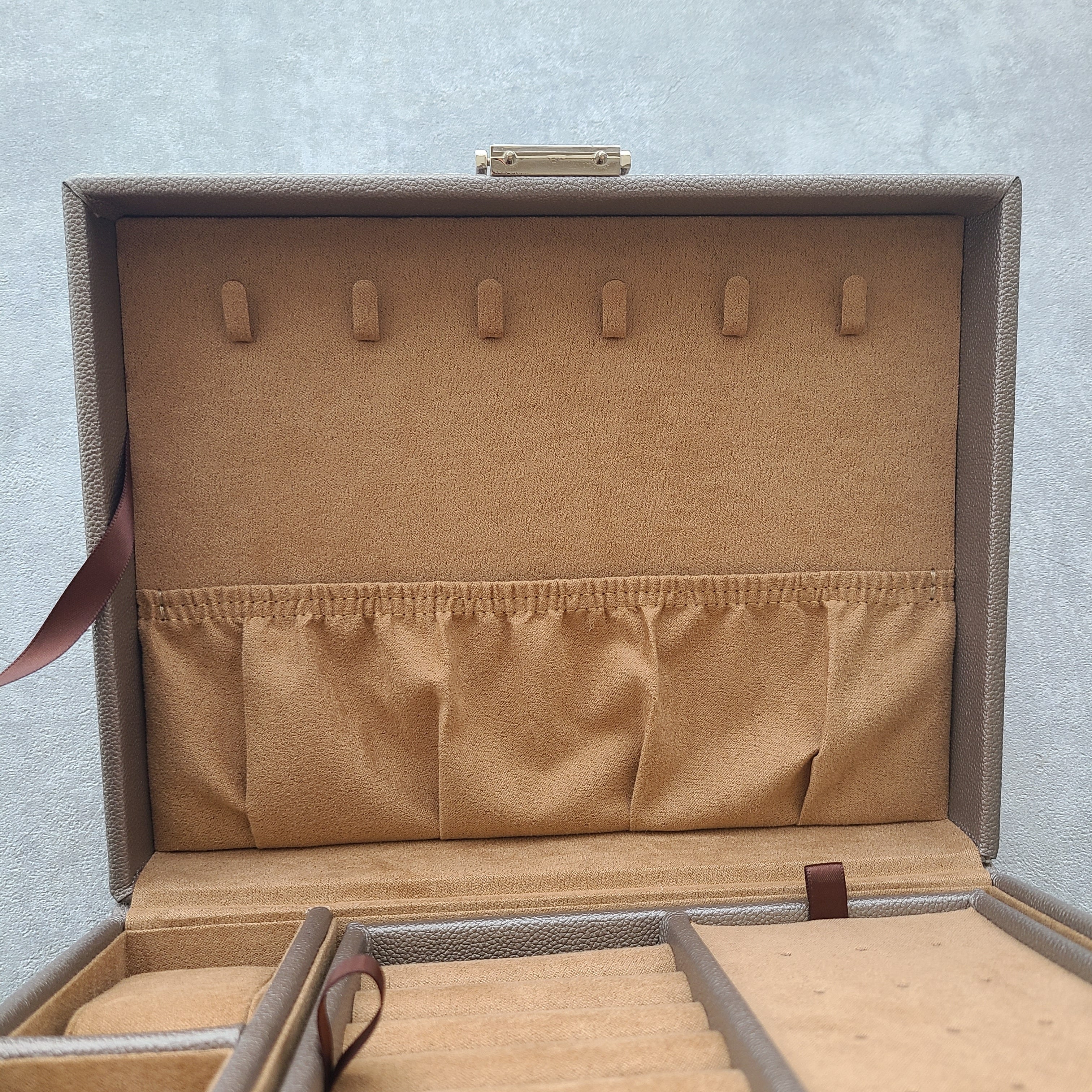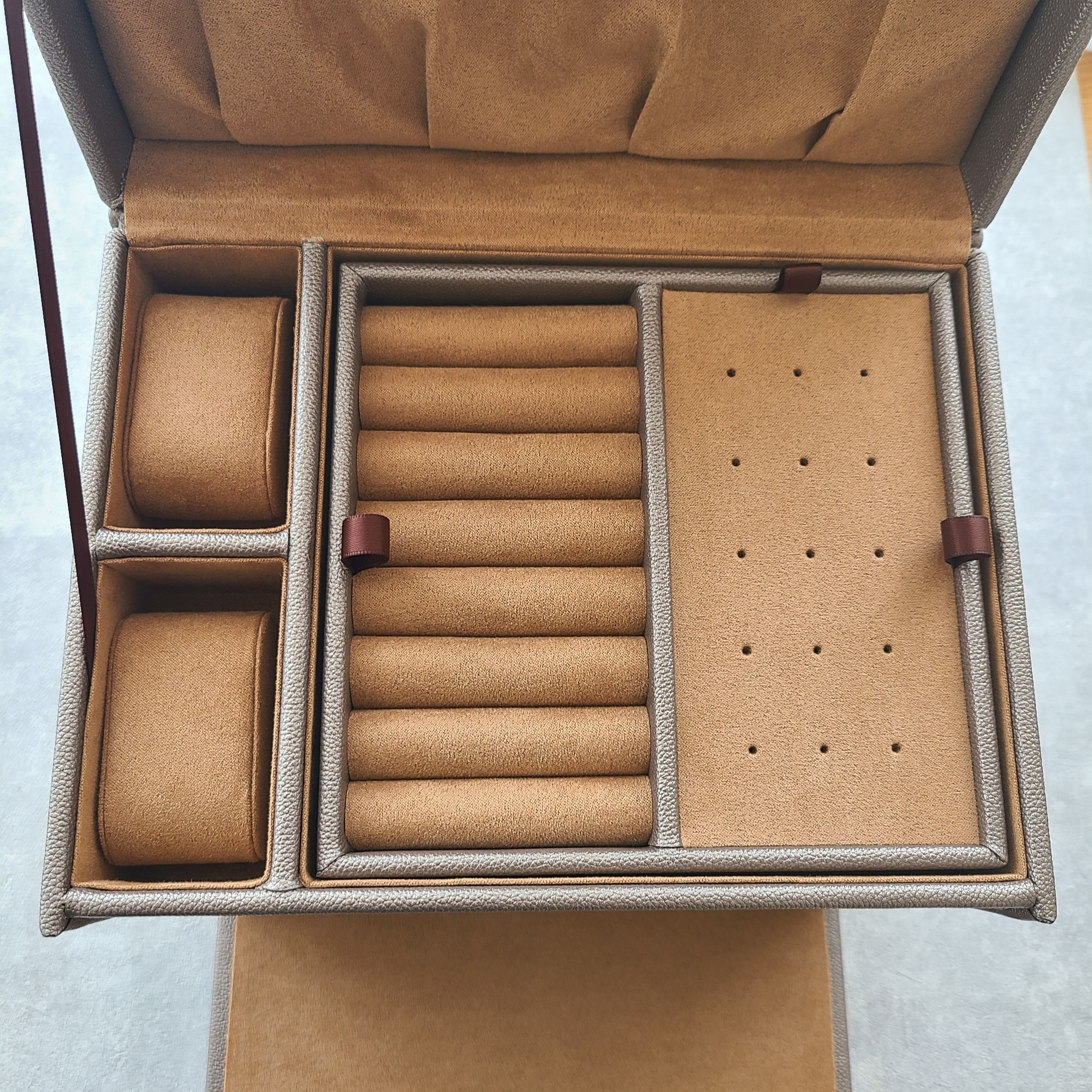 取っ手付き 大容量 ジュエリーボックス|合皮レザー×スエード調|大人のブロンズカラー|アクセサリー収納 ギフトにも サイズL | 【takarabako88】1点物のジュエリーボックス/メモリアルボックス~誕生日プレゼント・記念日・特別なギフトに~