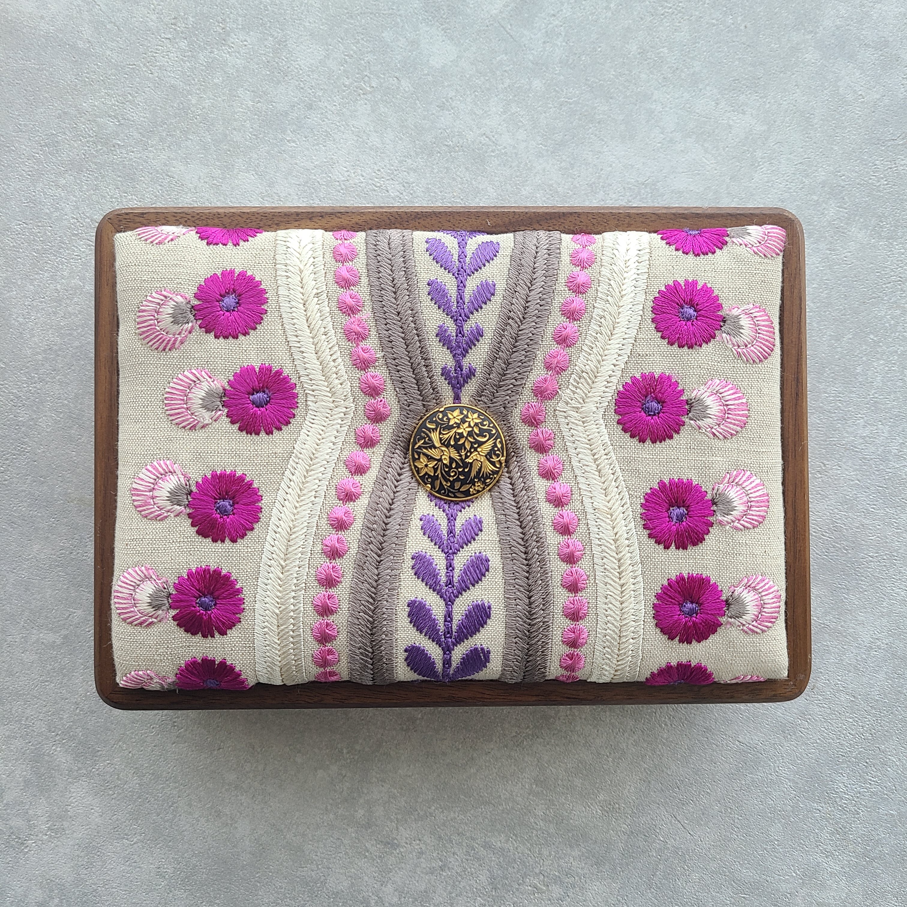 【送料無料】1点物の木製ジュエリーボックス|ヴィンテージチャーム×刺繍インポート生地 アクセサリーケース ギフトにも | 【takarabako88】1点物のジュエリーボックス/メモリアルボックス~誕生日プレゼント・記念日・特別なギフトに~
