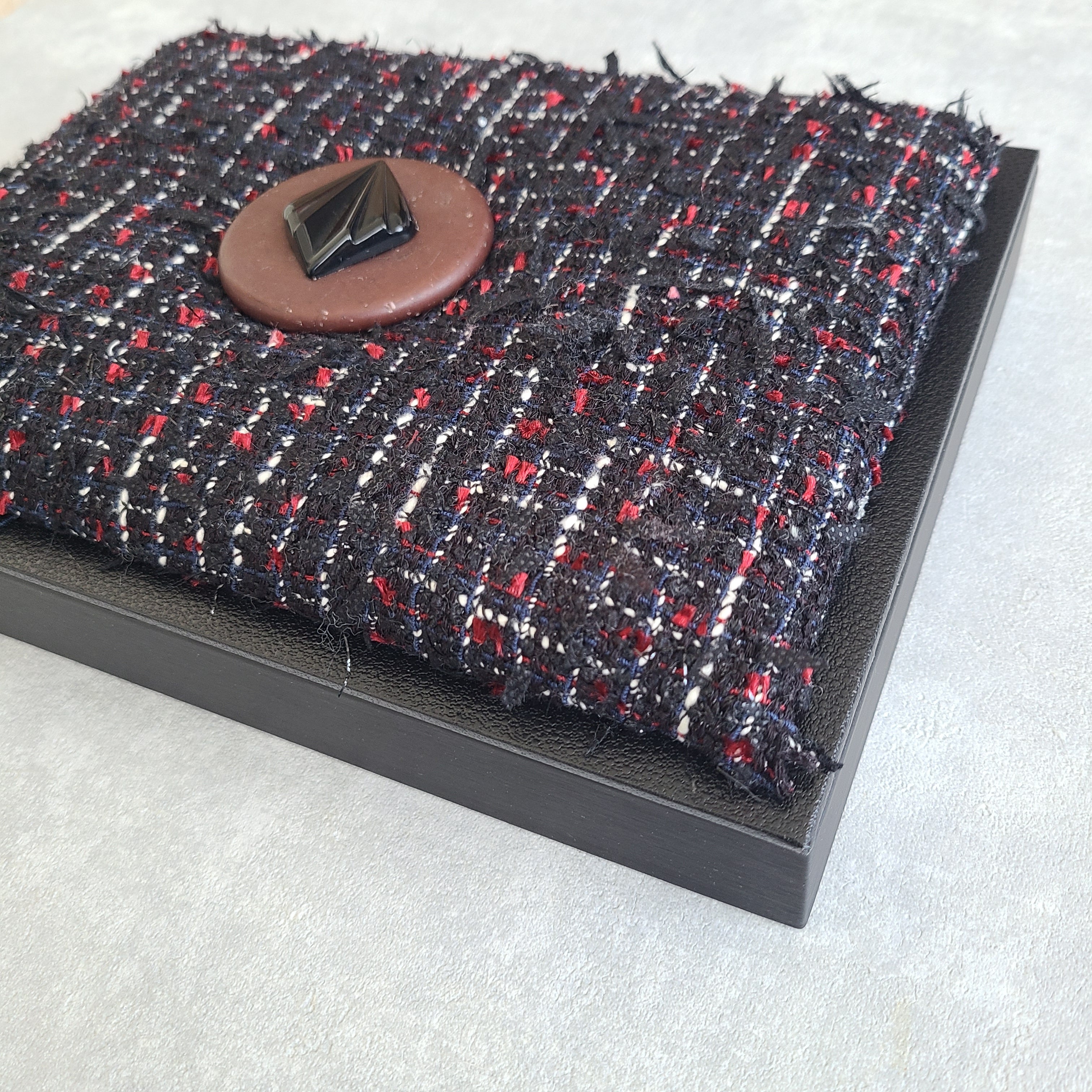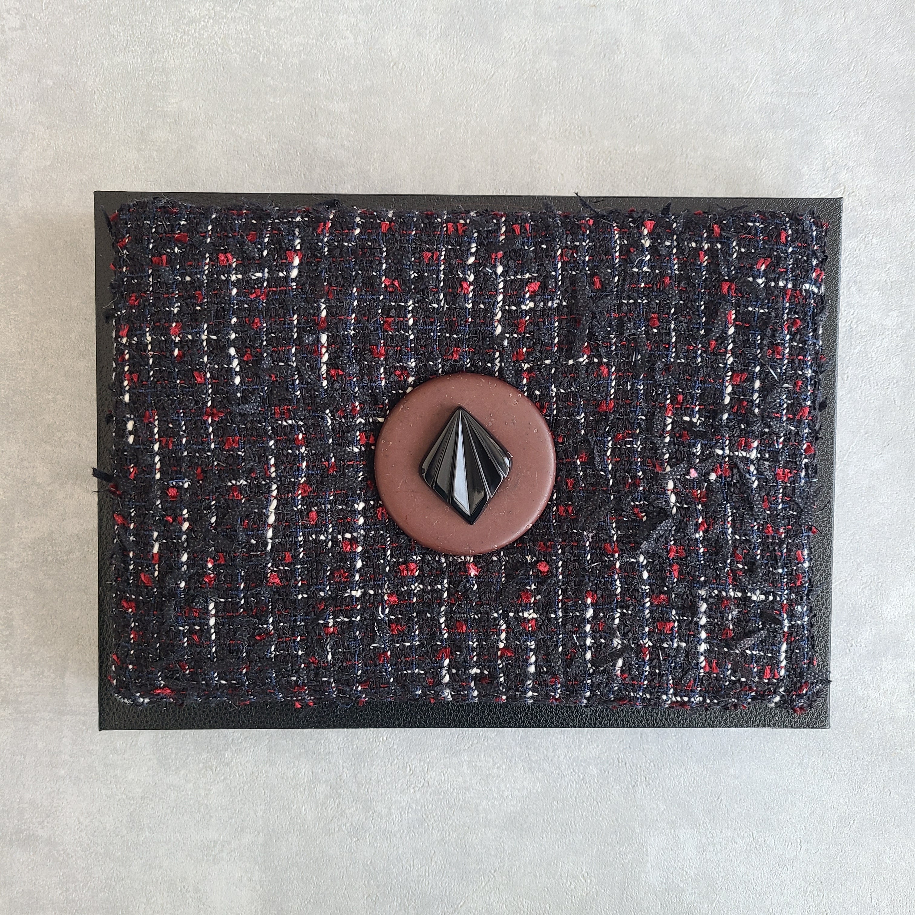 古いビーズパーツを組み合わせて作った特大チャームが個性的なジュエリーボックスです。
