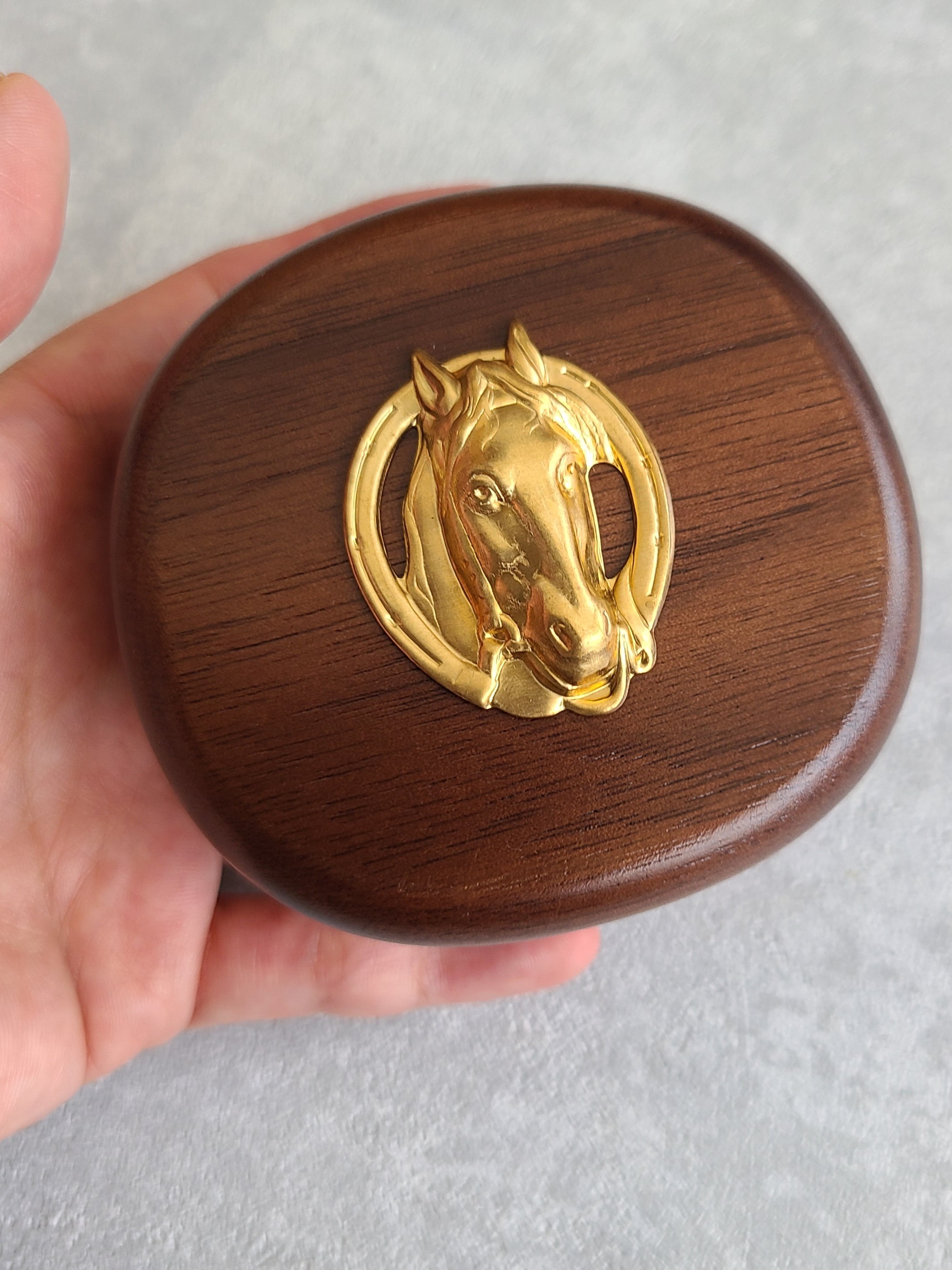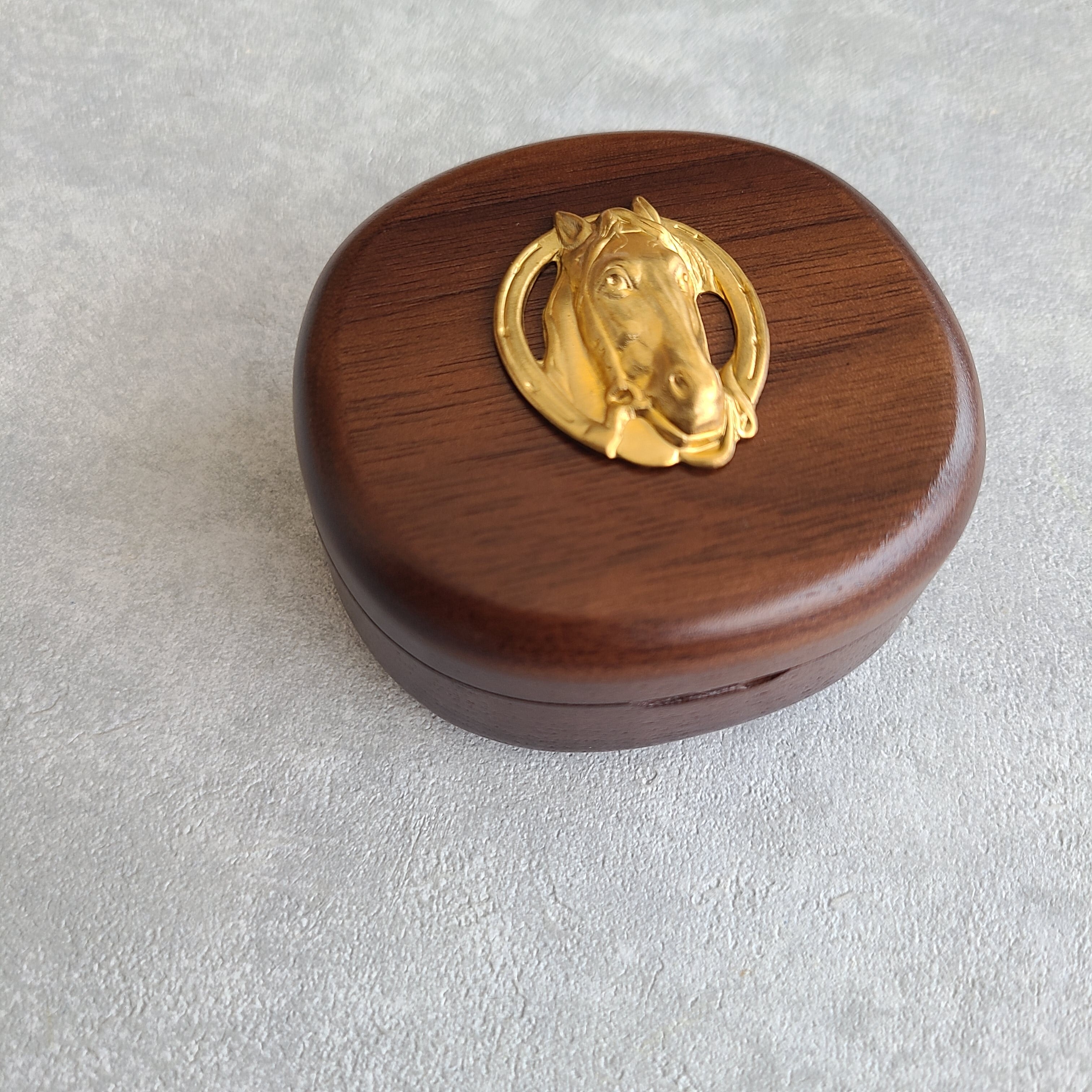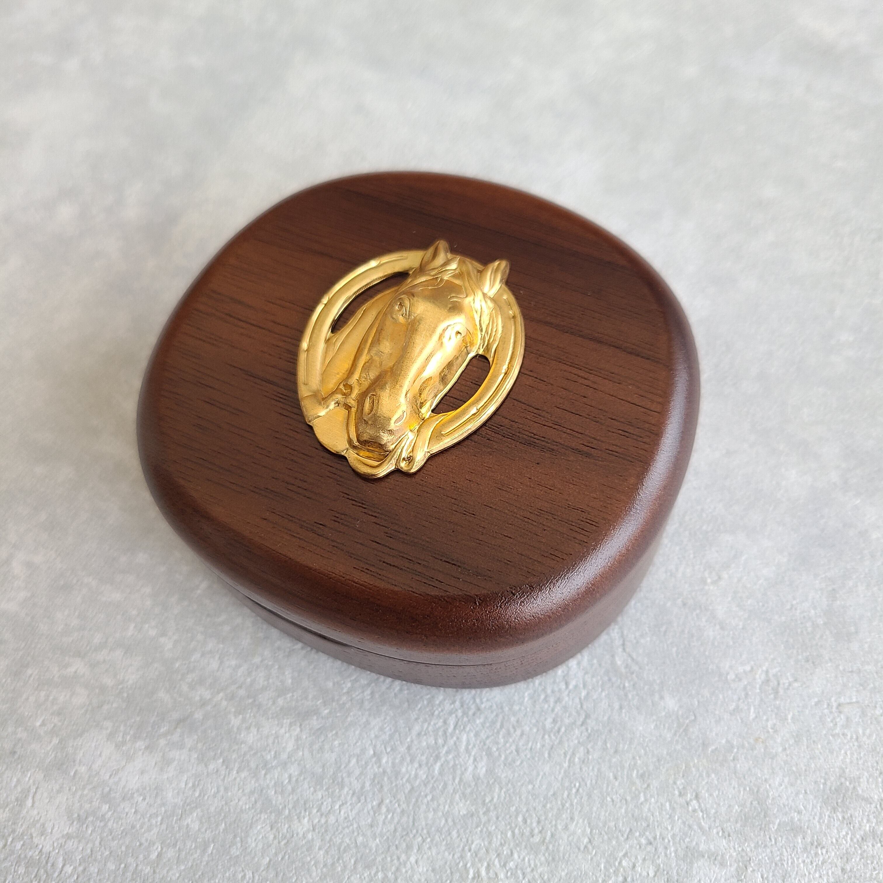 真鍮のお馬さんチャームをあしらった小さいサイズのジュエリーボックスです。