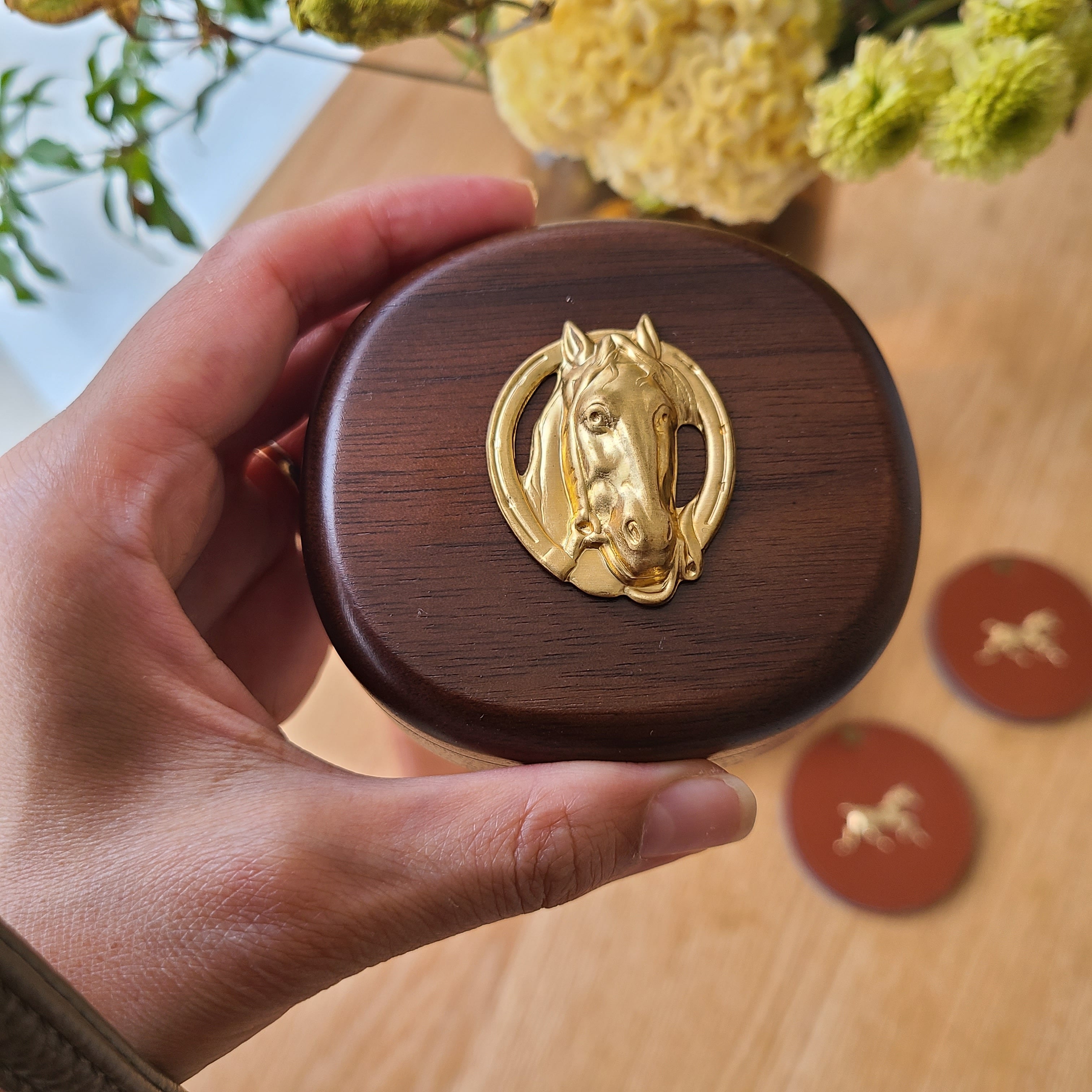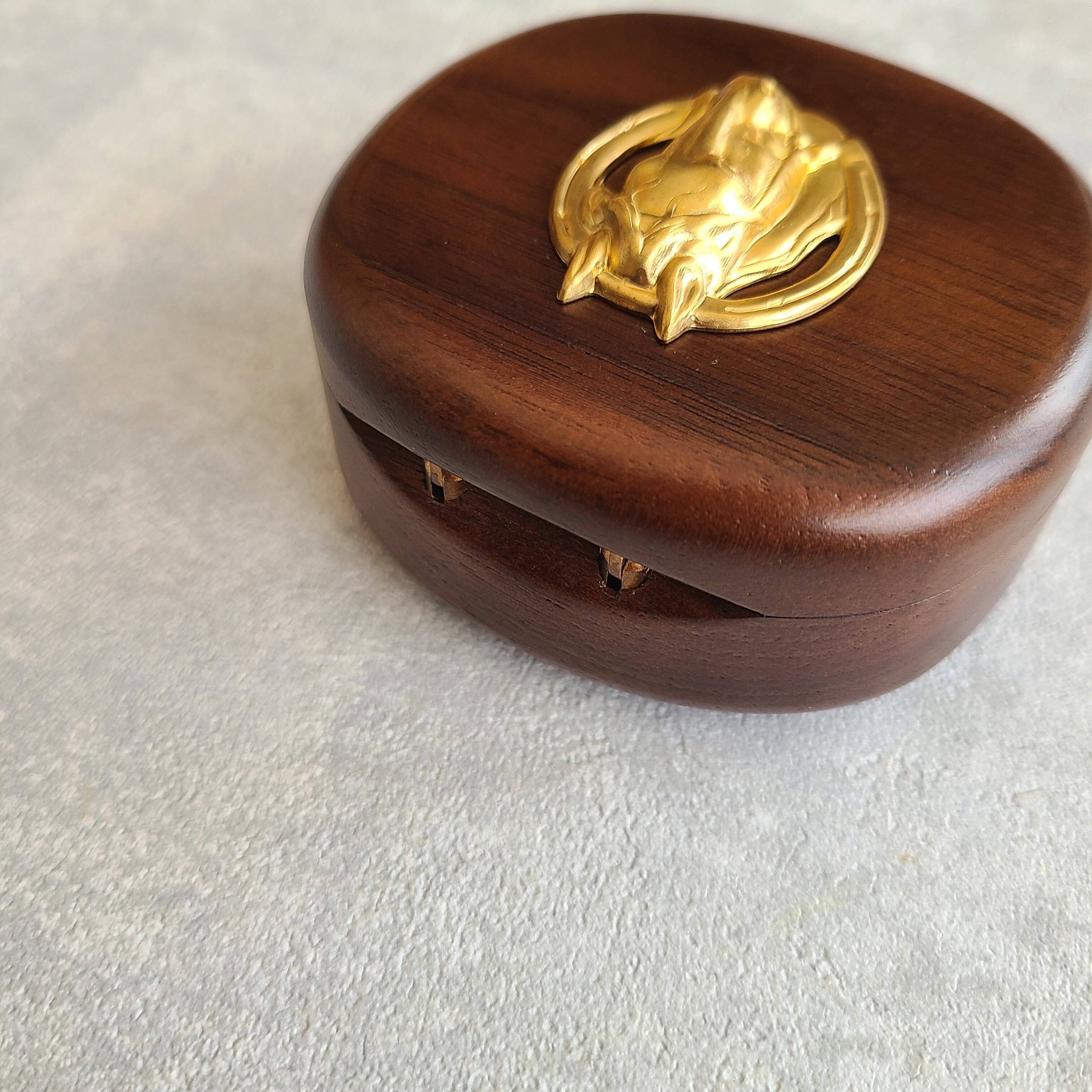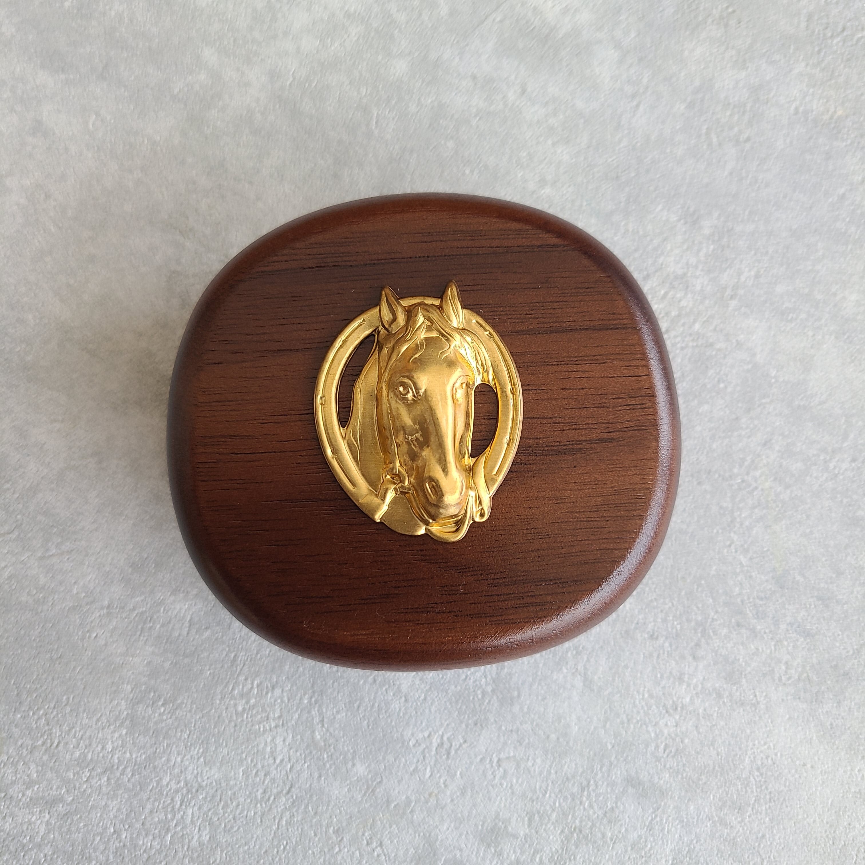 真鍮のお馬さんチャームをあしらった小さいサイズのジュエリーボックスです。