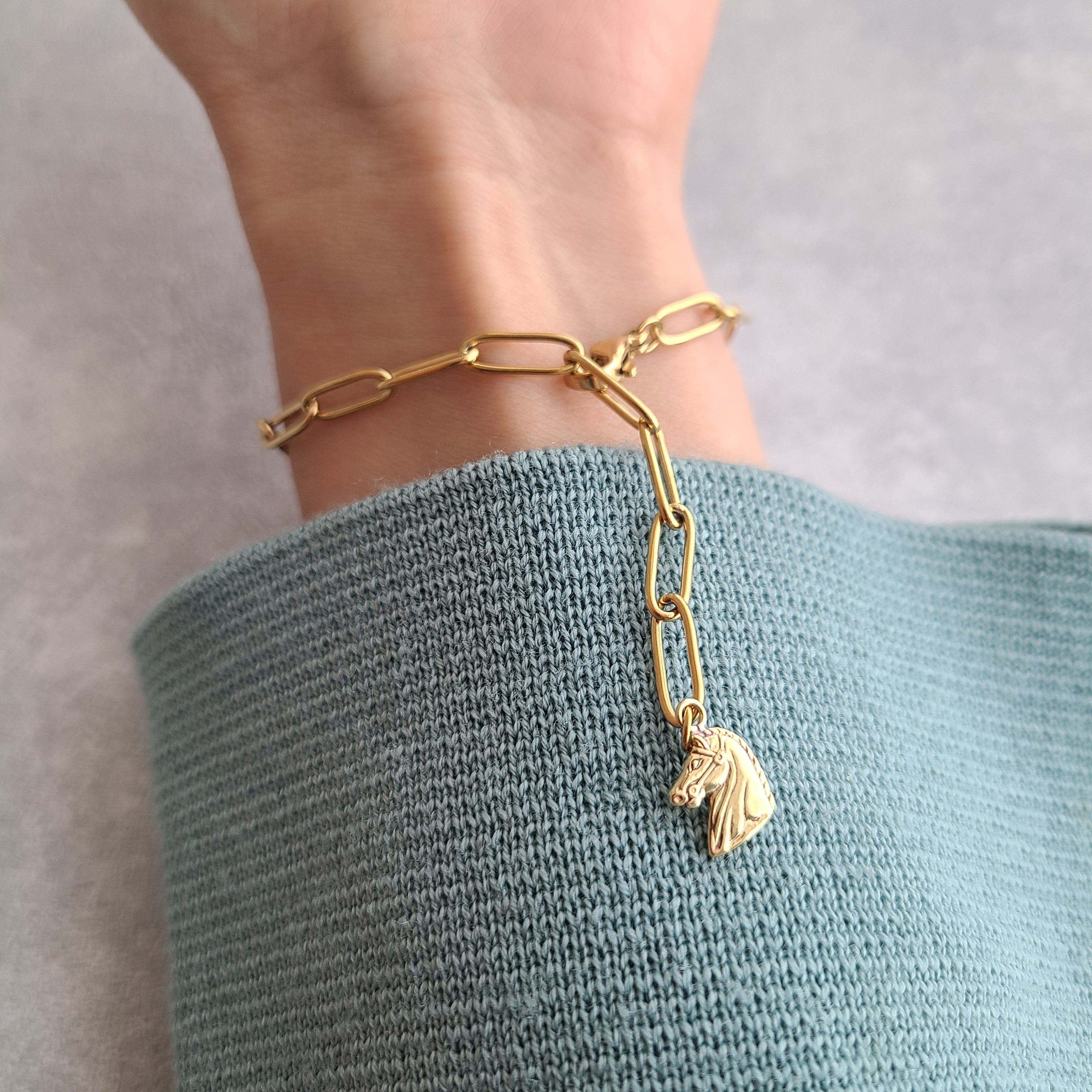 上品で大人可愛い、お馬さんチャーム付きのクリップチェーンブレスレットです。