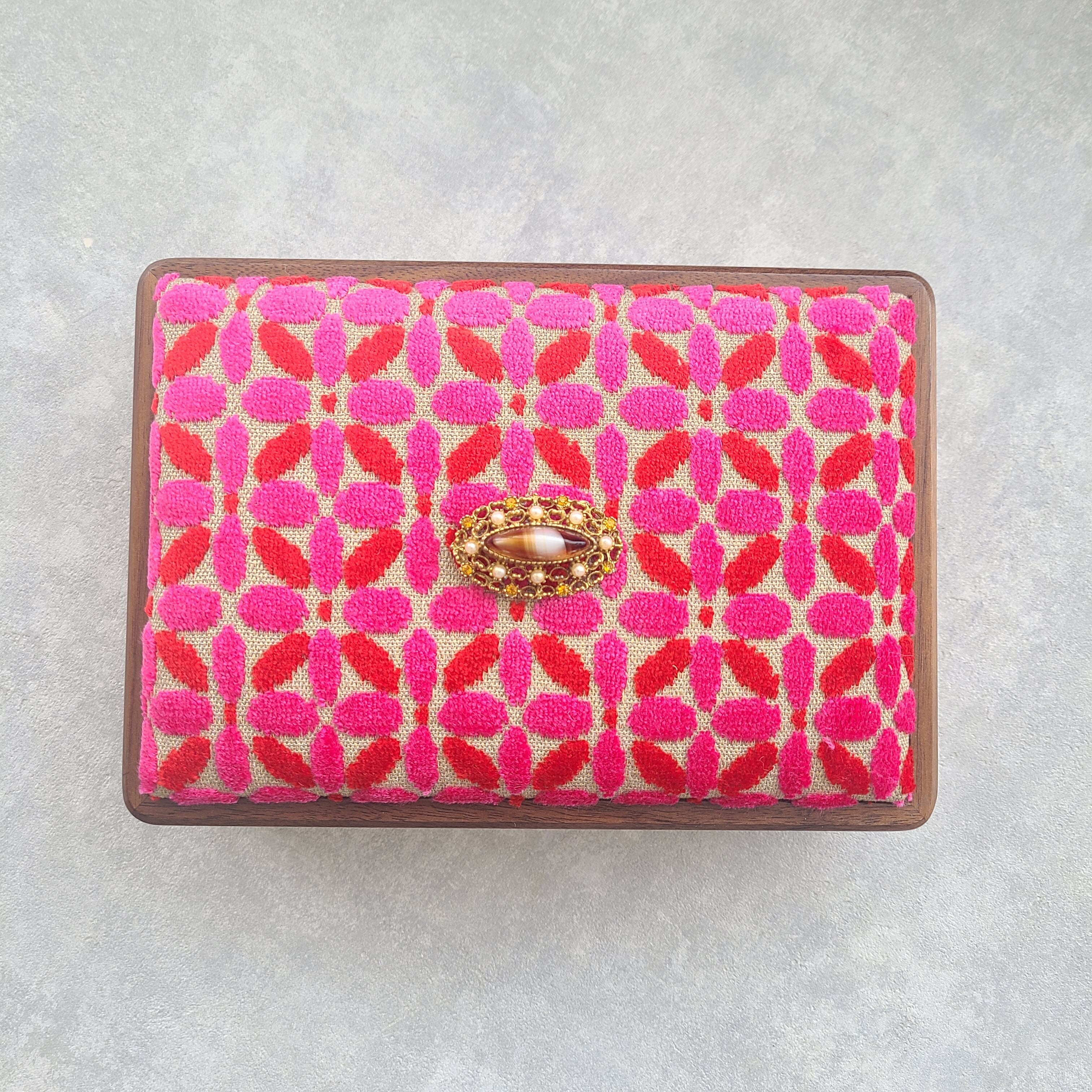 さらに、存在感のあるヴィンテージブローチを丁寧にリメイクし、世界にひとつだけの特別なジュエリーボックスに仕立てました。