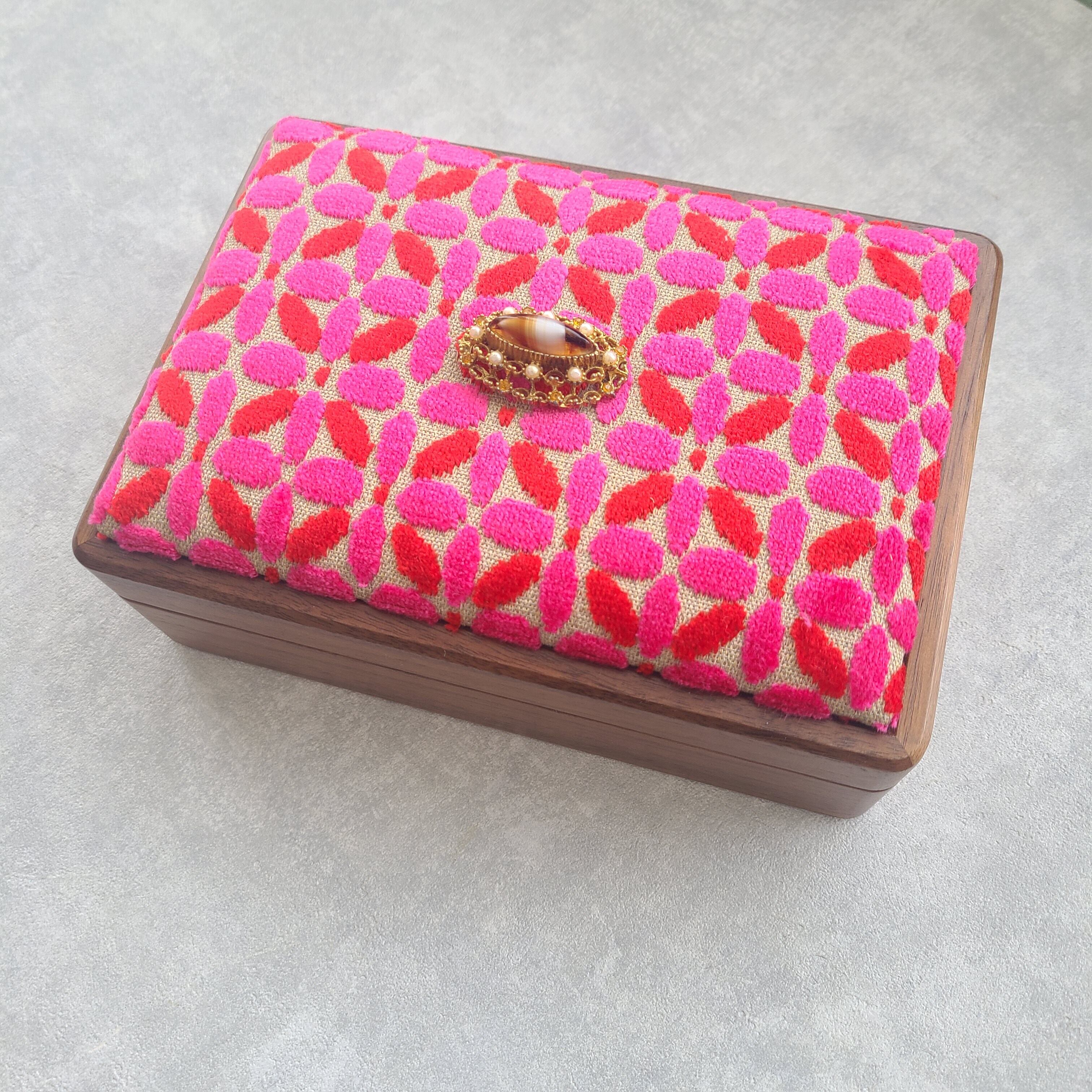 【送料無料】1点物の木製ジュエリーボックス|ヴィンテージチャーム×刺繍インポート生地 アクセサリーケース ギフトにも